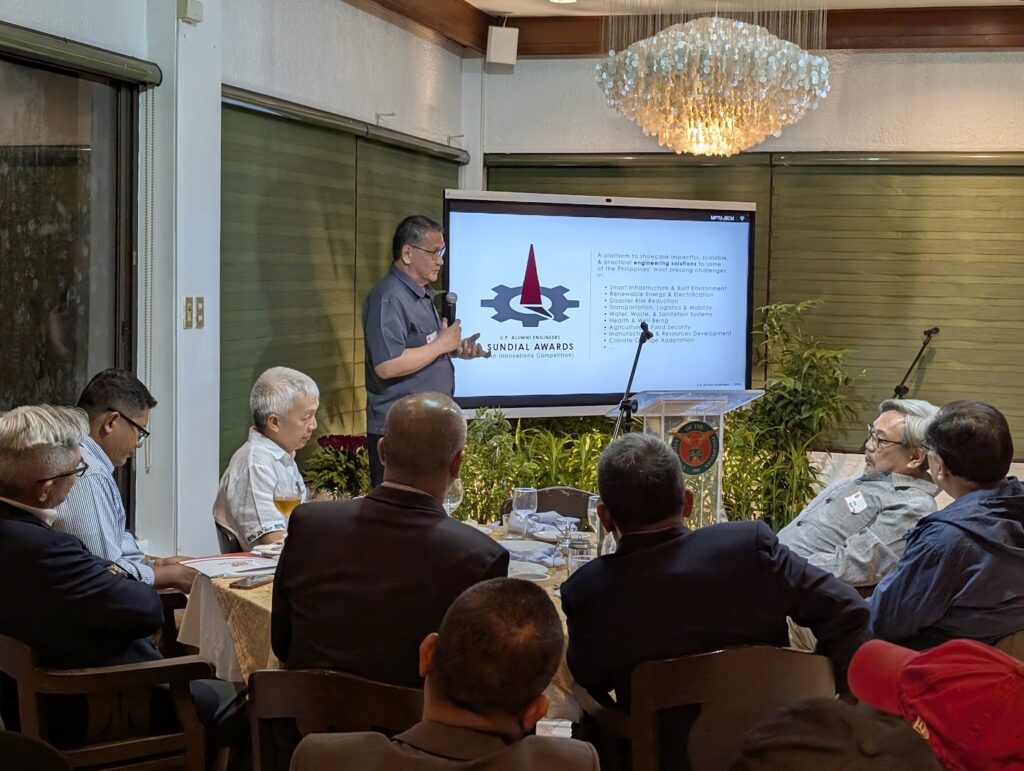 In response to this call, UPAE President Engr. Manfred Guangko introduced the Sundial Awards as a platform for encouraging actionable, scalable engineering innovations from UP alumni. “This award is not just about recognition — it’s about inspiration and impact,” he explained. “Our goal is to galvanize the UP engineering community, to level up and double up in driving solutions to urgent national problems.”